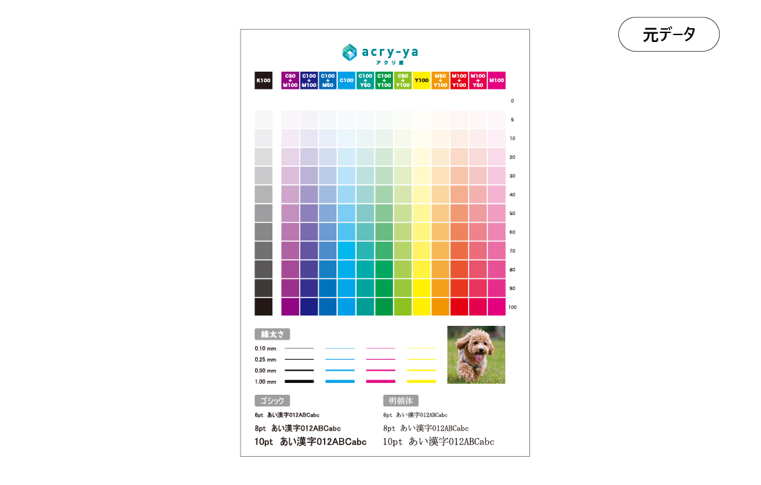 - 色味の再現に厳密な条件がある場合は、UVインクジェット印刷フルオーダーよりご相談ください。