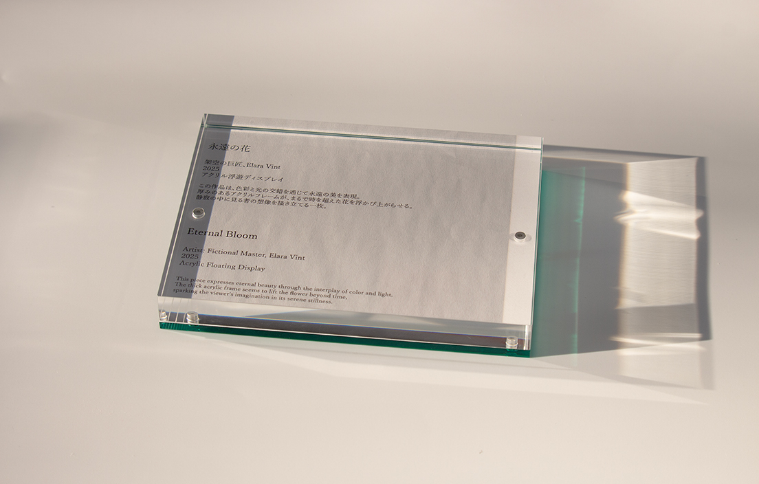 事業内容:横浜の自社工場でアクリルの切削、溶剤接着、重合接着、アクリル封入、UVインクジェット印刷、鏡面加工など。横浜の自社工場で設計・品質管理を行い、量産時は信頼できる協力会社と連携して高品質を維持。オーダーメイドにも対応し、コレクターのニーズに応える。