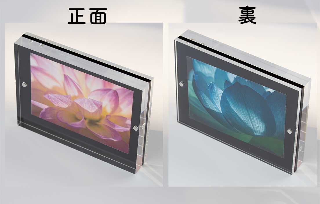 カラーごとに雰囲気が変わるので、製品撮影がとても楽しく、愛着が湧いてきました。飾るだけで気分が上がる、そんなフレームに仕上がりました。おすすめです!写真やコレクションと一緒にアクリ屋の商品でみなさまの生活がより充実したら嬉しいです。